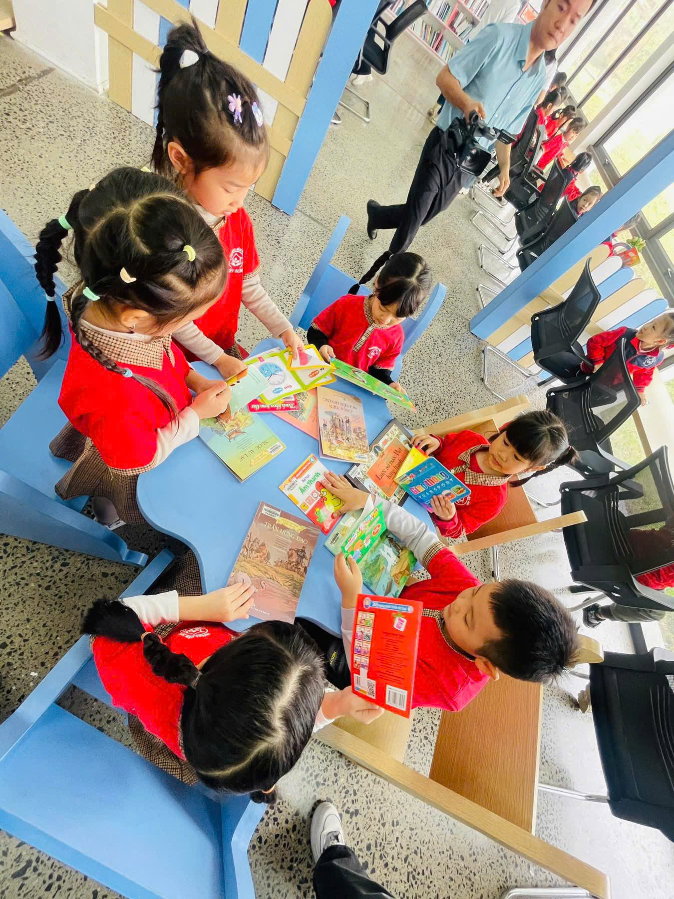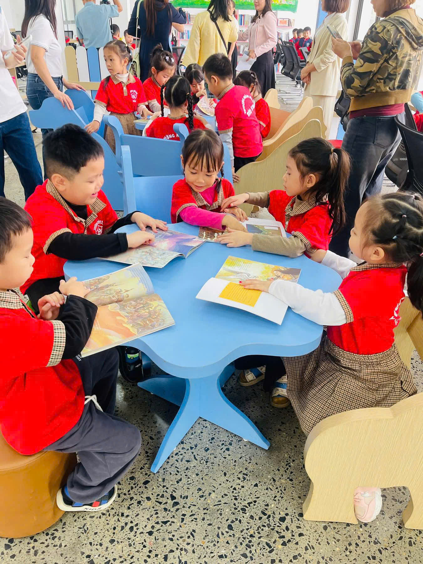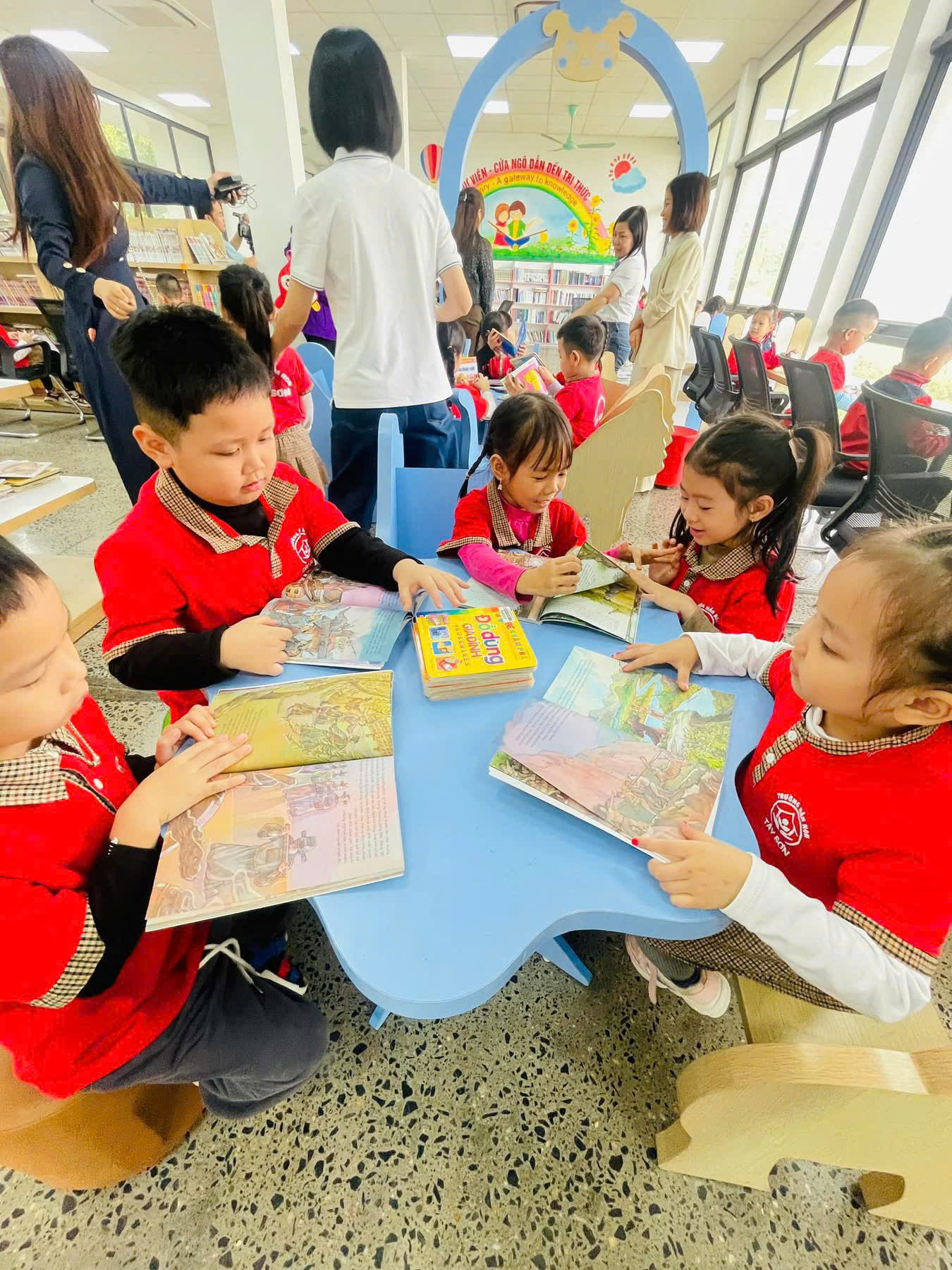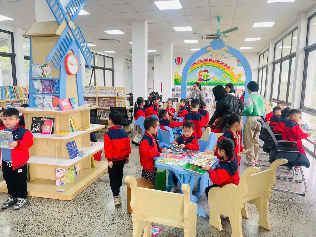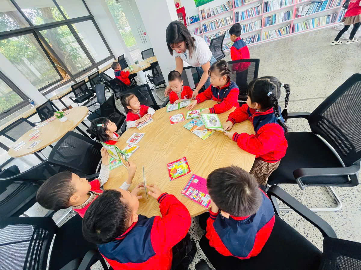 các bé khối 5 tuổi trường MN Tây Sơn trải nghiệm tại Thư viện Bảo tàng Tam Điệp