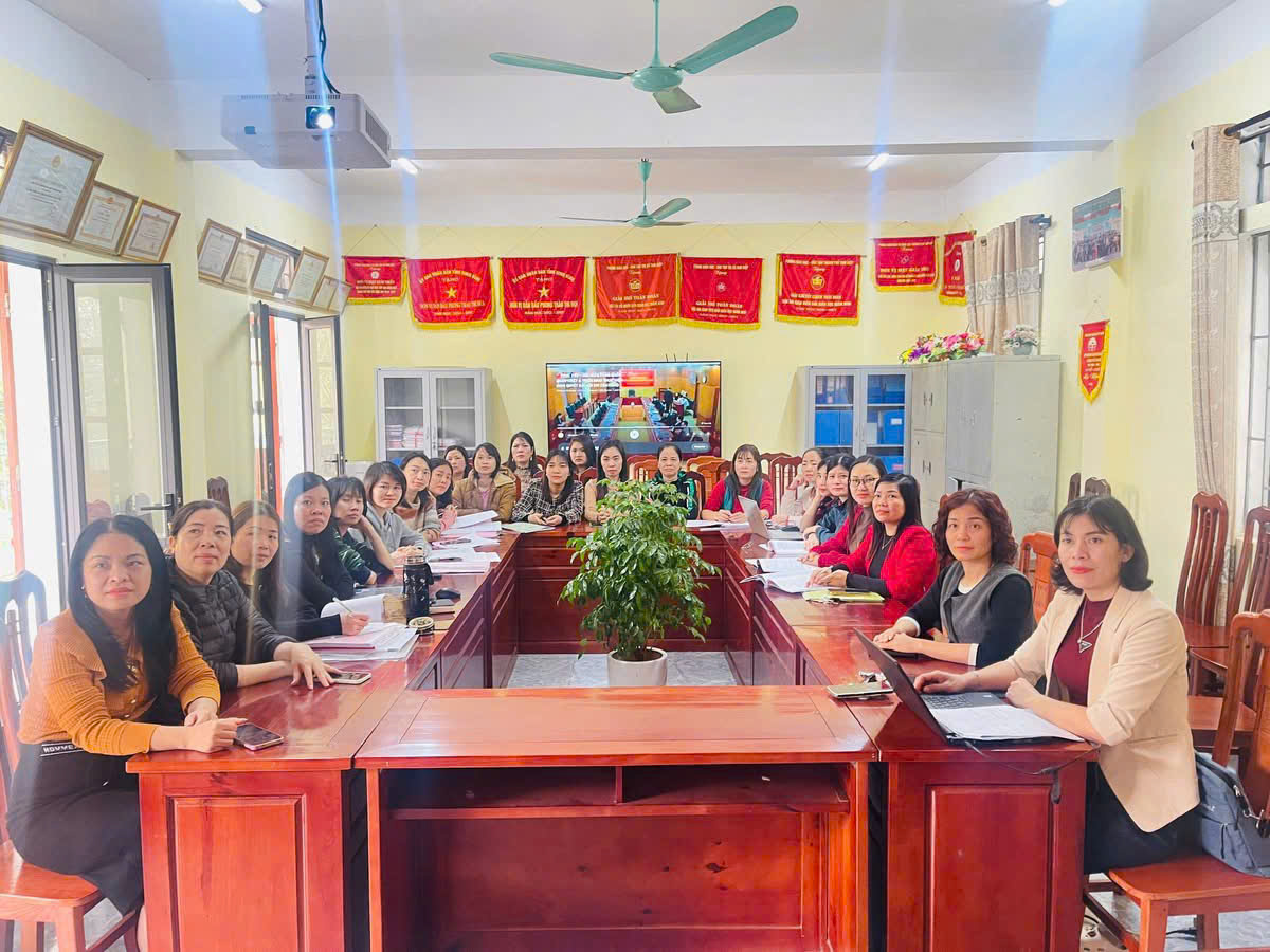 Chi bộ Trường Mầm non có mặt đầy đủ tại Hội trường Tham gia “Nghiên cứu, học tập, quán triệt và triển khai thực hiện Nghị quyết Đại hội XIV của Đảng”