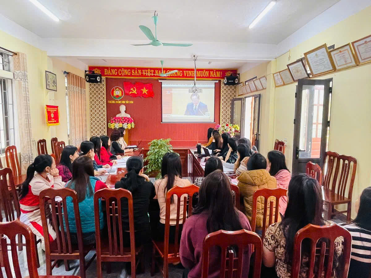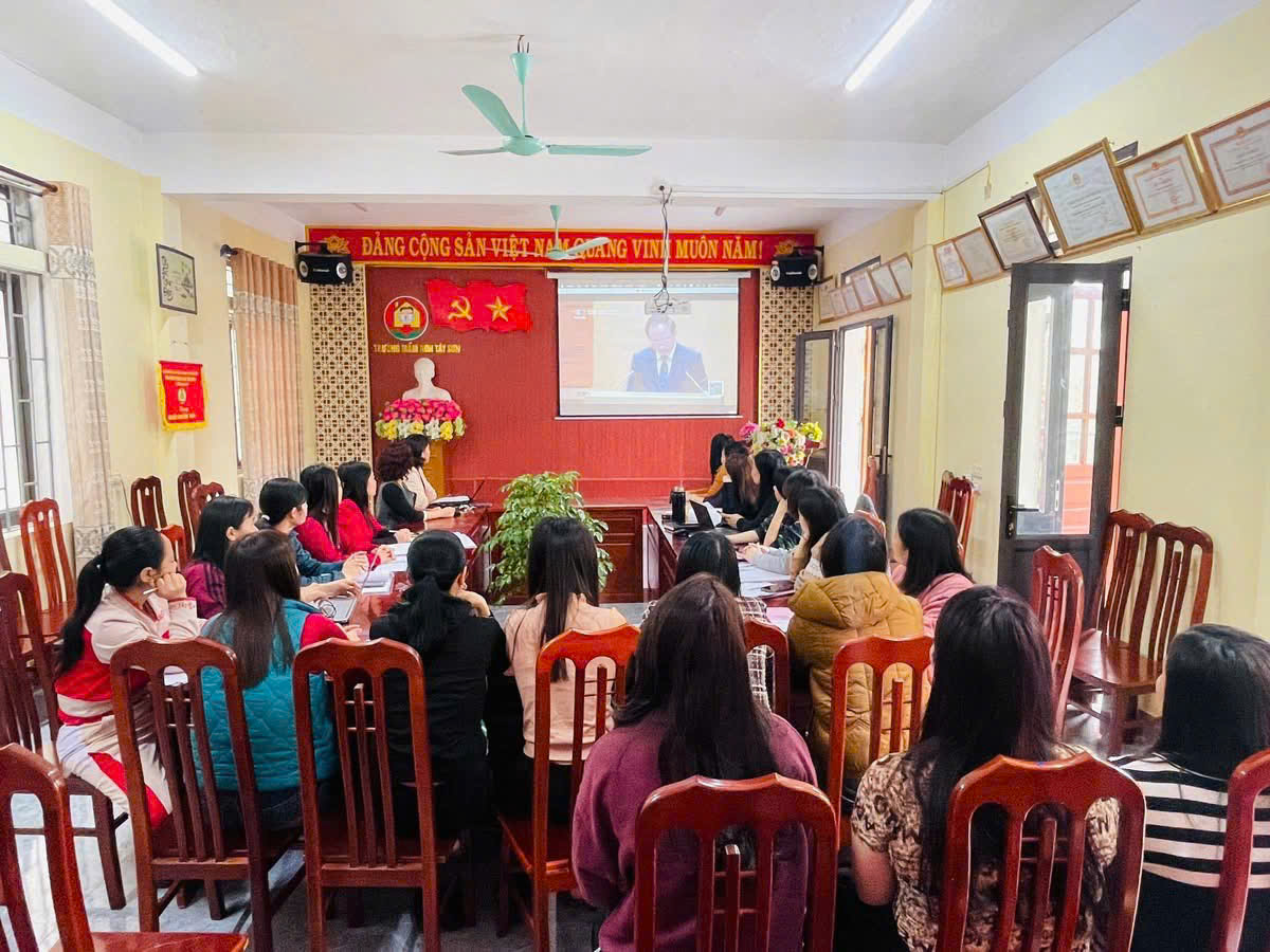 Chi bộ Trường MN Tây Sơn tham gia nghiên cứu học tập, quán triệt và triển khai thực hiện Nghị quyết Đại hội XIV của Đảng