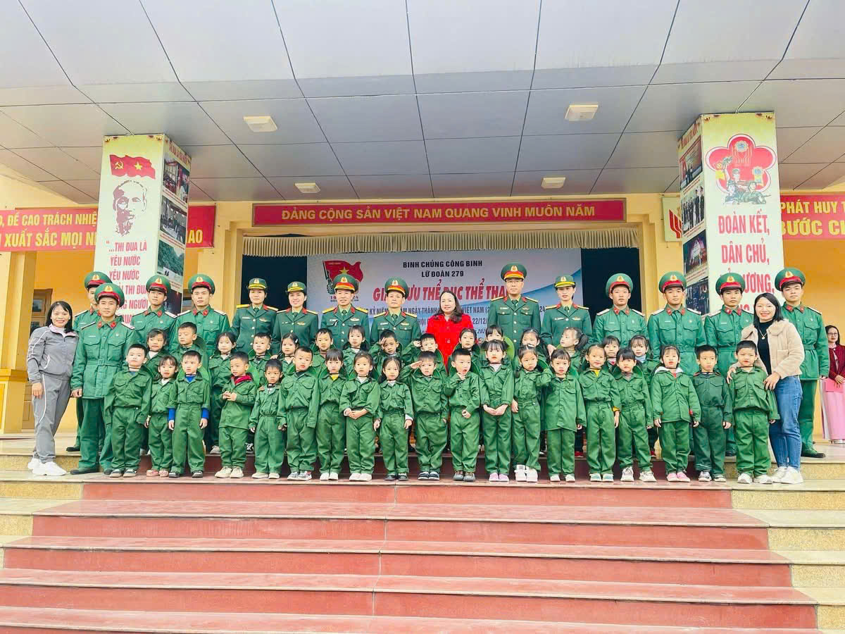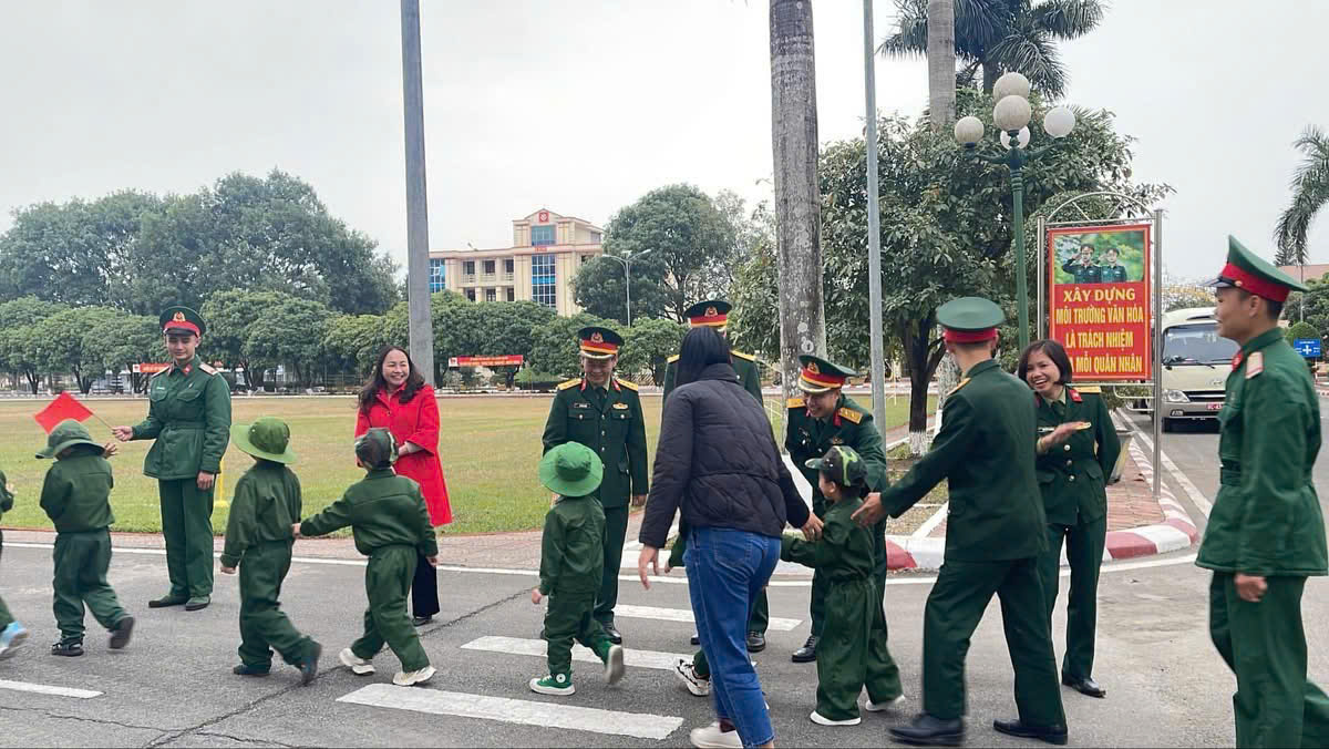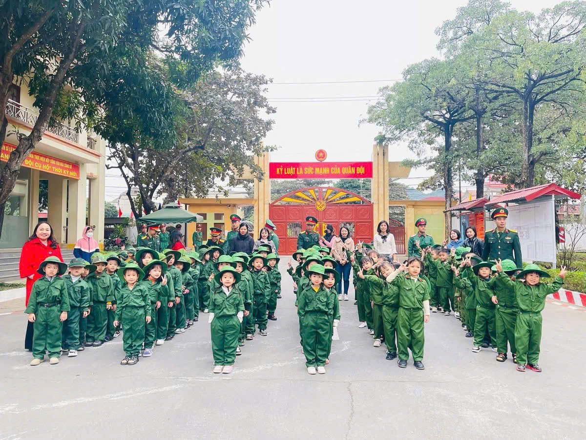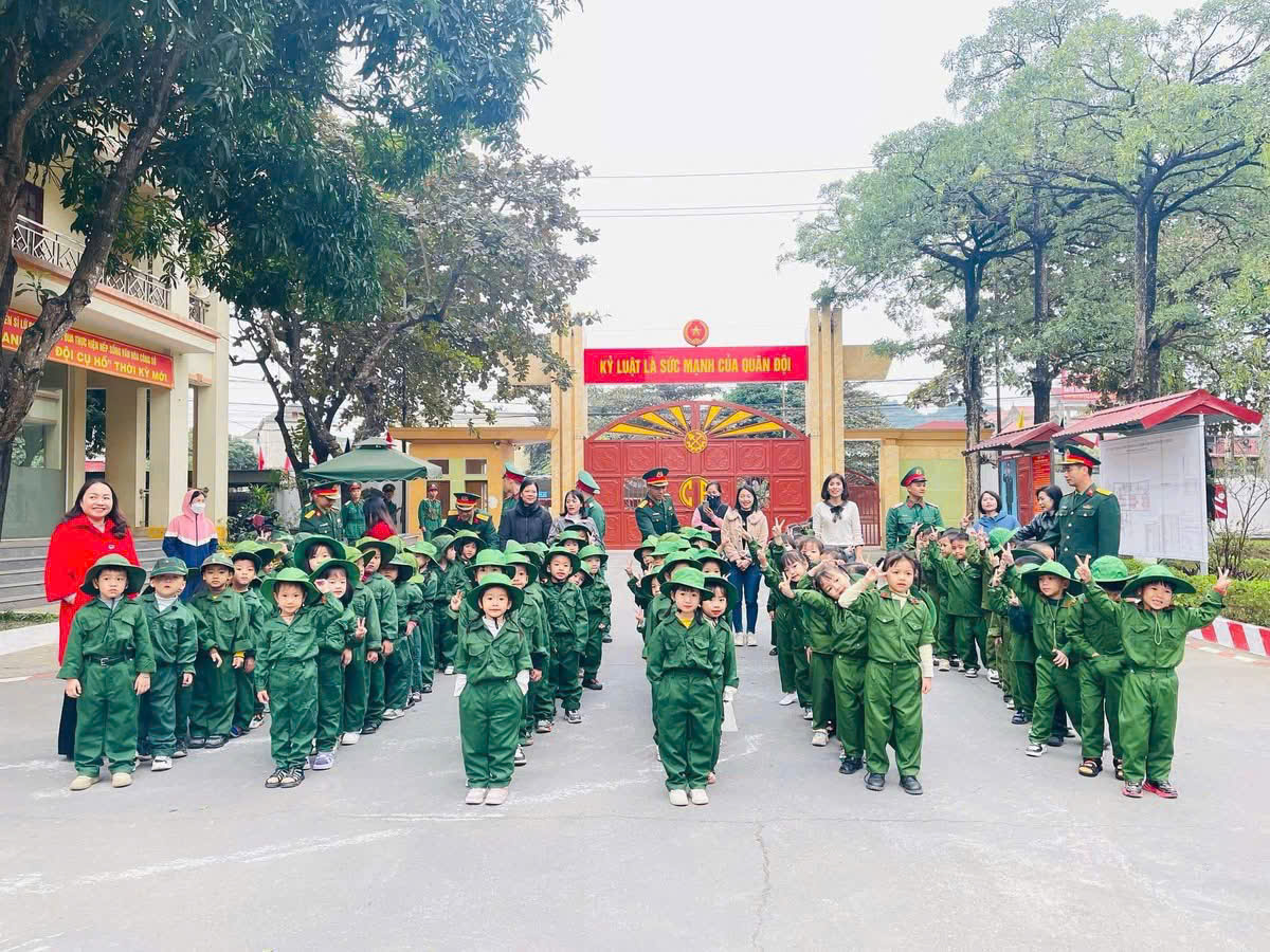 Một ngày làm chiến sĩ của các bé khối 4 tuổi và 5 tuổi trường MN Tây Sơn tại Lữ đoàn Công binh 279