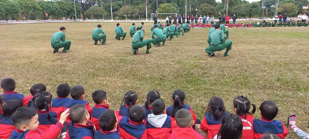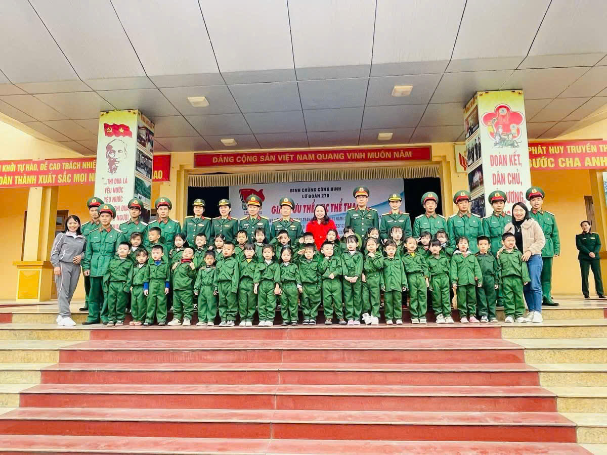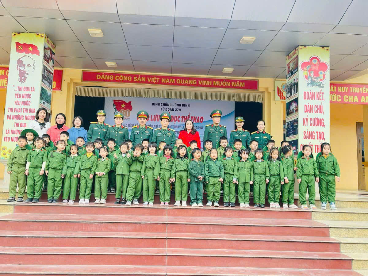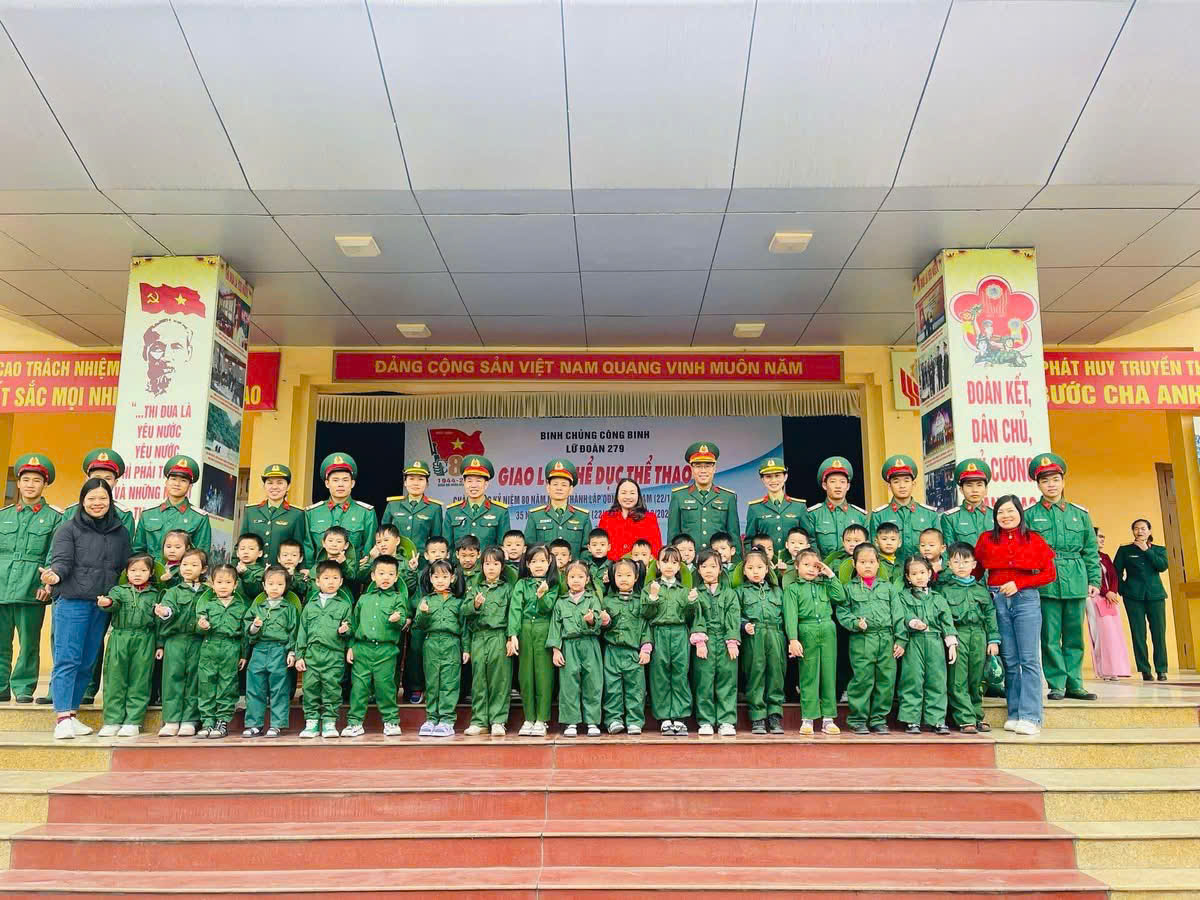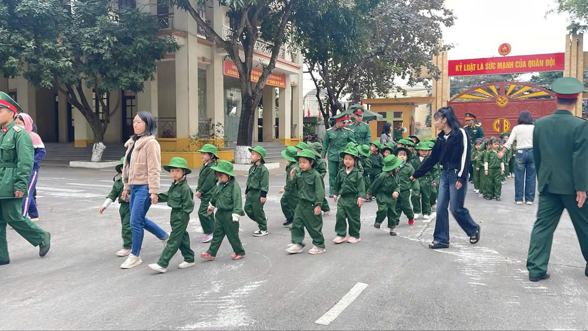 Một ngày làm chiến sĩ của các bé khối 4 tuổi và 5 tuổi trường MN Tây Sơn tại Lữ đoàn Công binh 279